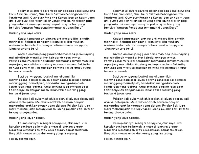 AMALAN BERHEMAH DI JALAN RAYA Selamat sejahtera saya ucapkan kepada Yang Berusaha Puan Hajah Noorizah binti Ali guru besar Sekolah Rendah Kebangsaan Seri. Berhemah di jalan raya 2017-02-22 - Penulis ialah Penulis Khas Harian Metro Bersama Idris Musa Usah pentingkan diri ketika kongsi kemudahan untuk semua. Perkara utama yang ingin kami titipkan.